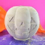 Pull the face of the pumpkin pail away from the cement pumpkin very last.