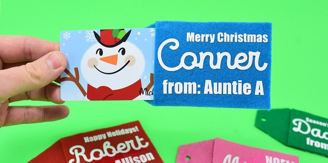 Make these combo gift card holders and gift tags out of felt… perfect to keep gift cards and the present it goes with together!
