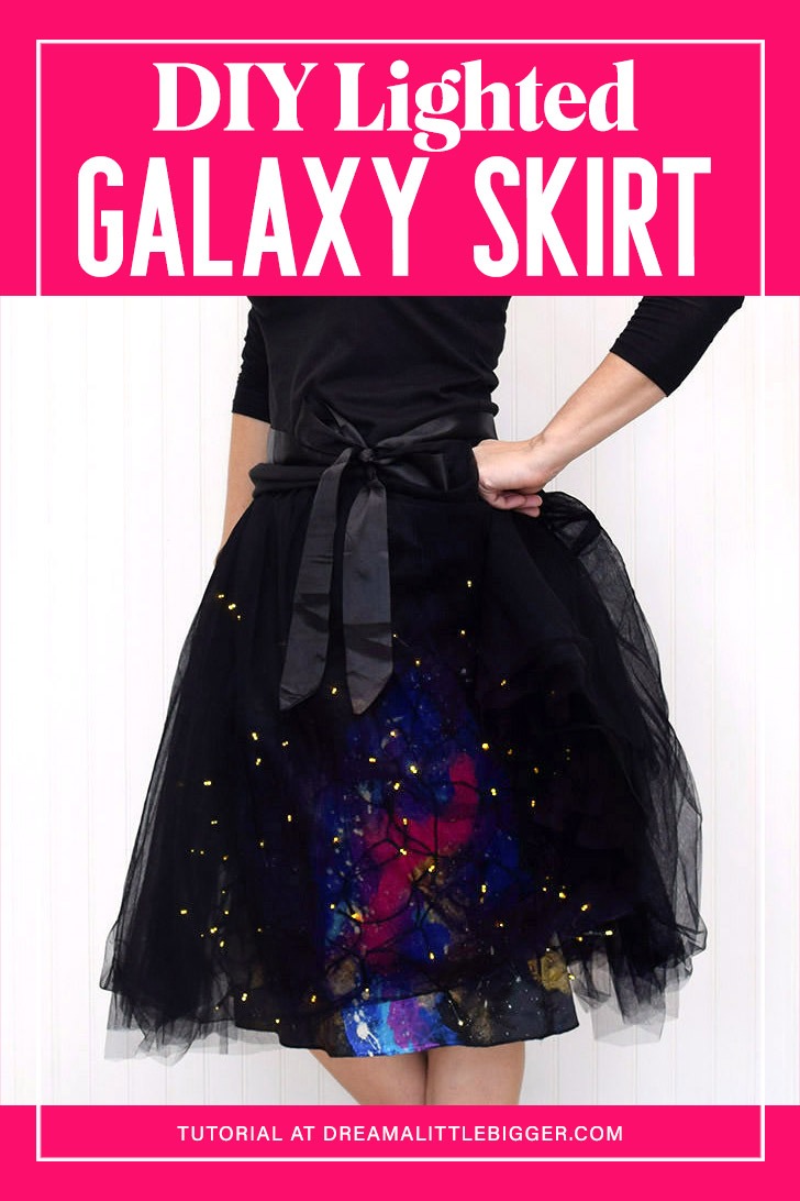 Add Christmas lights to a skirt! Too cool! And I’m loving this whole galaxy skirt idea. Great for a more low key Halloween costume for me!