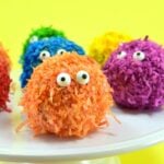 These little edible pom pom monsters are beyond cute and great for a sweet little treat any time of the year! Step by step tutorial included… looks simple enough!
