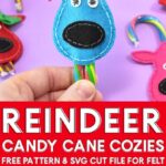 Looking for an inexpensive Christmas gift? These felt reindeer candy cane cozies are super simple to make, darn cute and cost less than a buck apiece!