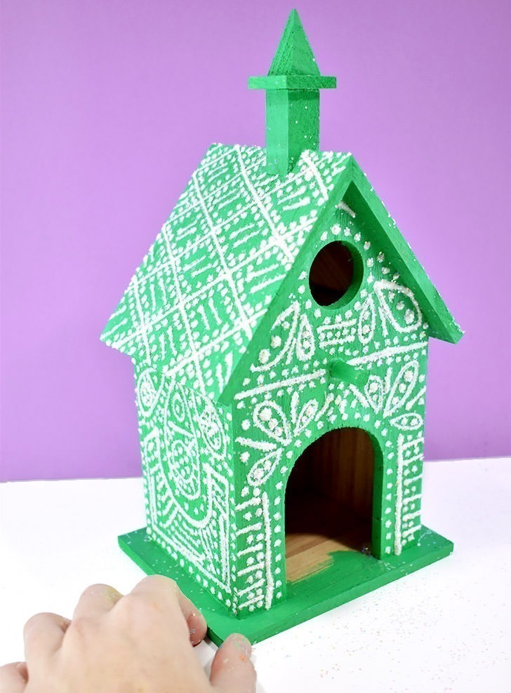 This is genius! these faux gingerbread birdhouses are cute, glittery and can be stored and pulled out for my Christmas decor next year!
