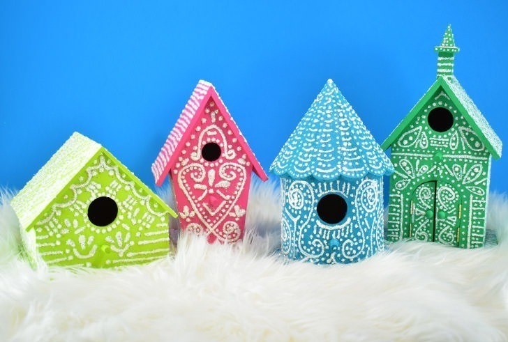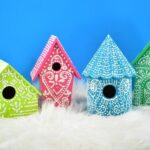 This is genius! these faux gingerbread birdhouses are cute, glittery and can be stored and pulled out for my Christmas decor next year!