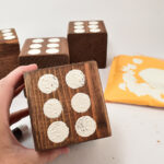 Turn untreated 4×4 lumber into a fun lawn dice game. Use a 5 gallon paint bucket and it’s HUGE fun!