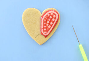 valentine-decorated-sugar-cookie-royal-icing-love-bug-dreamalittlebigger-22 Fill in the wing’s outline by flooding the shape. While the icing is still wet draw a design using your other icing colors.
