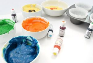 Rainbow cupcakes don’t have to take forever… these are quick! And there is a recipe for that grocery store bakery kind of frosting that dries hard!