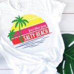 With a cool vintage vibe, this Visit Your Local Salty Beach tee shirt is sure to be a hot new staple to your summer wardrobe. Get the free SVG file to make your own!