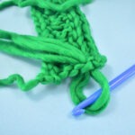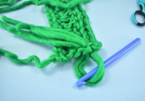 Pull the center you found in your yarn pieces through the edge of your scarf.