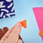 Cut a triangle shape out of orange felt for the turkey’s beak. Cut a small slit in the middle where it will connect with the face.