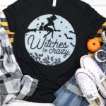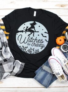 How adorable is this “witches be crazy” tee? Get the FREE Halloween SVG file to make your own witchy tee with any cutting machine!
