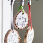 Grab our FREE pattern and add a little rustic flair to your Christmas decor with these easy to make, hand-lettered wood slice Christmas ornaments!