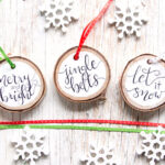 Grab our FREE pattern and add a little rustic flair to your Christmas decor with these easy to make, hand-lettered wood slice Christmas ornaments!